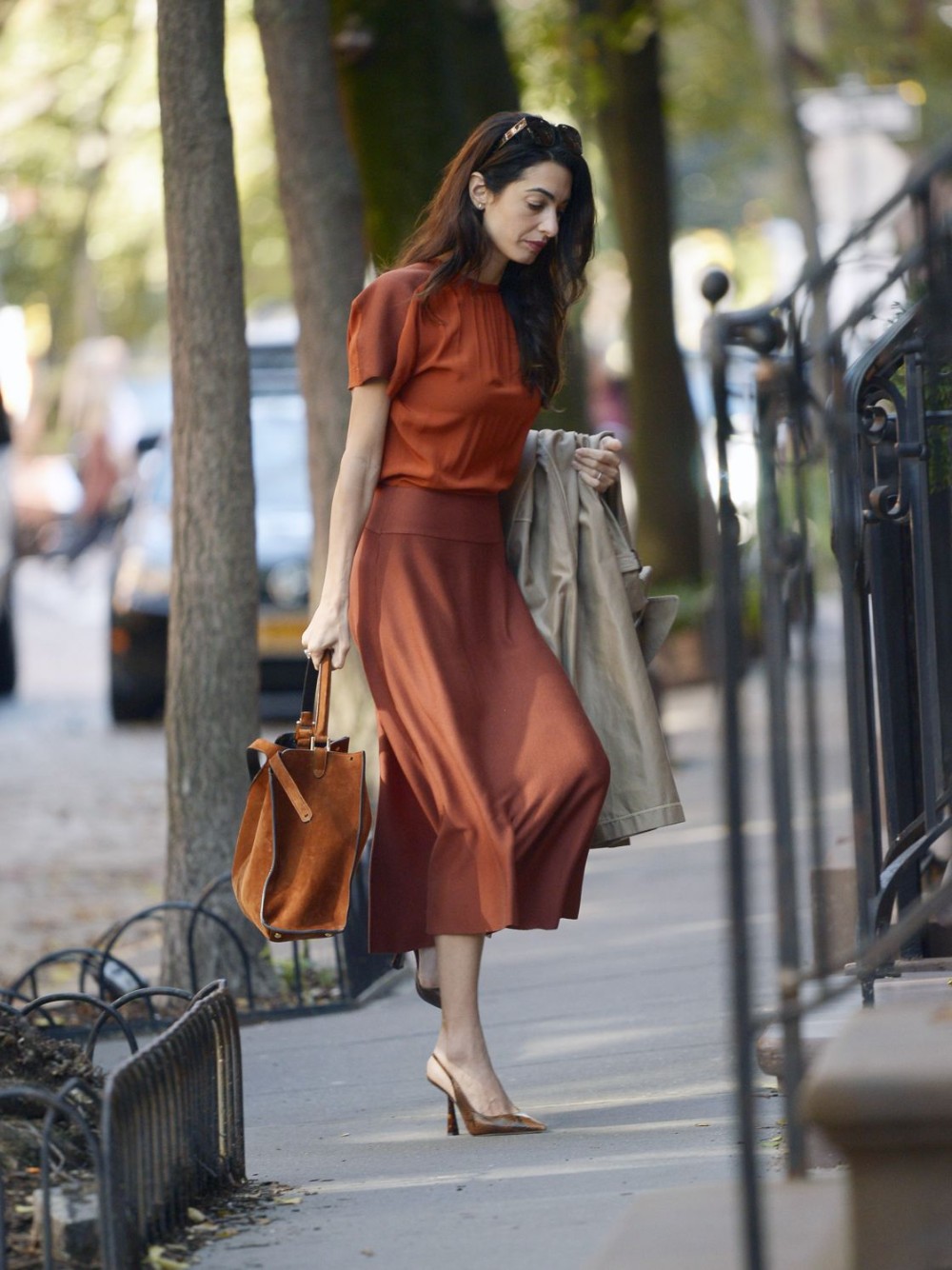 What are the most popular colors for this season? First, we have purple as seen on Meghan Markle and on the runways of Sally Lapointe. Then comes pistachio, a color we usually see in spring or summer, seen this fall on the runway of Jil Sander and Marc Jacobs. Last but not least, terracotta is a must this season, seen on Amal Clooney and on the runway of Michael Kors. Don’t hesitate to go for total looks while layering shades when it comes to these colors, as the result is simply stunning.