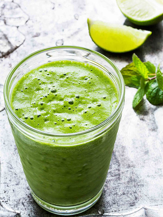 All you need to do is mix some sweet frozen grapes with berries. This delightful purple-hued drink is not only aesthetically pleasing, but it has also antioxidant proprieties. Let’s not forget all that vitamin C, manganese and potassium.