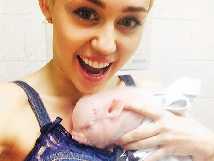 Miley has adopted a wide number of pets throughout the years, but none of them were like Bubba Sue. Why? Because it’s a pig!
