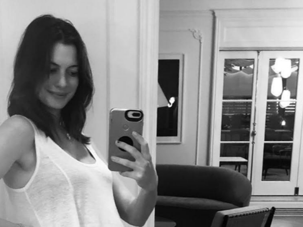 “It’s not for a movie…” shared Anne Hathaway on a black-and-white picture of herself smiling with a visible baby bump on Instagram.