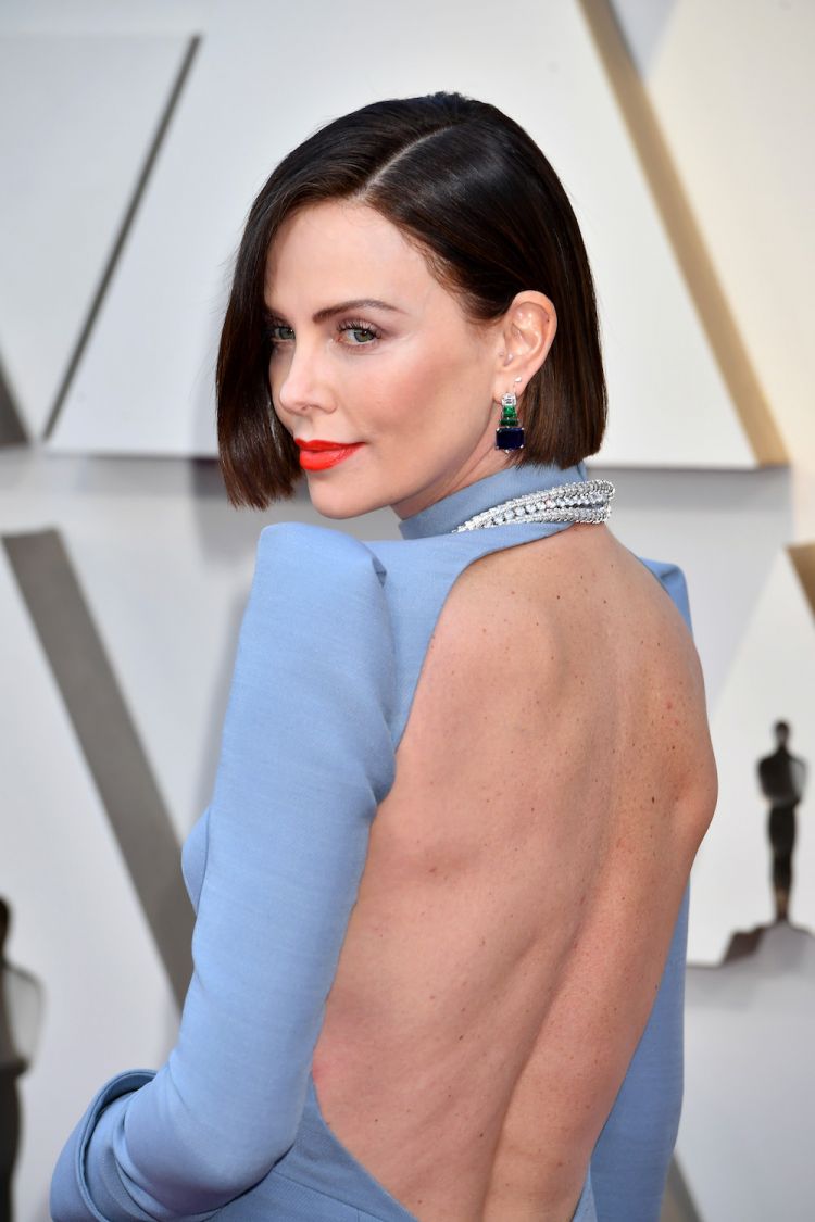 In a completely new look, Charlize dyed her hair to a darker shade and contrasted the color with a bold red lipstick that sealed the deal. It is always good to remember that when you go strong on the lips, you should keep it simple on the eyes.