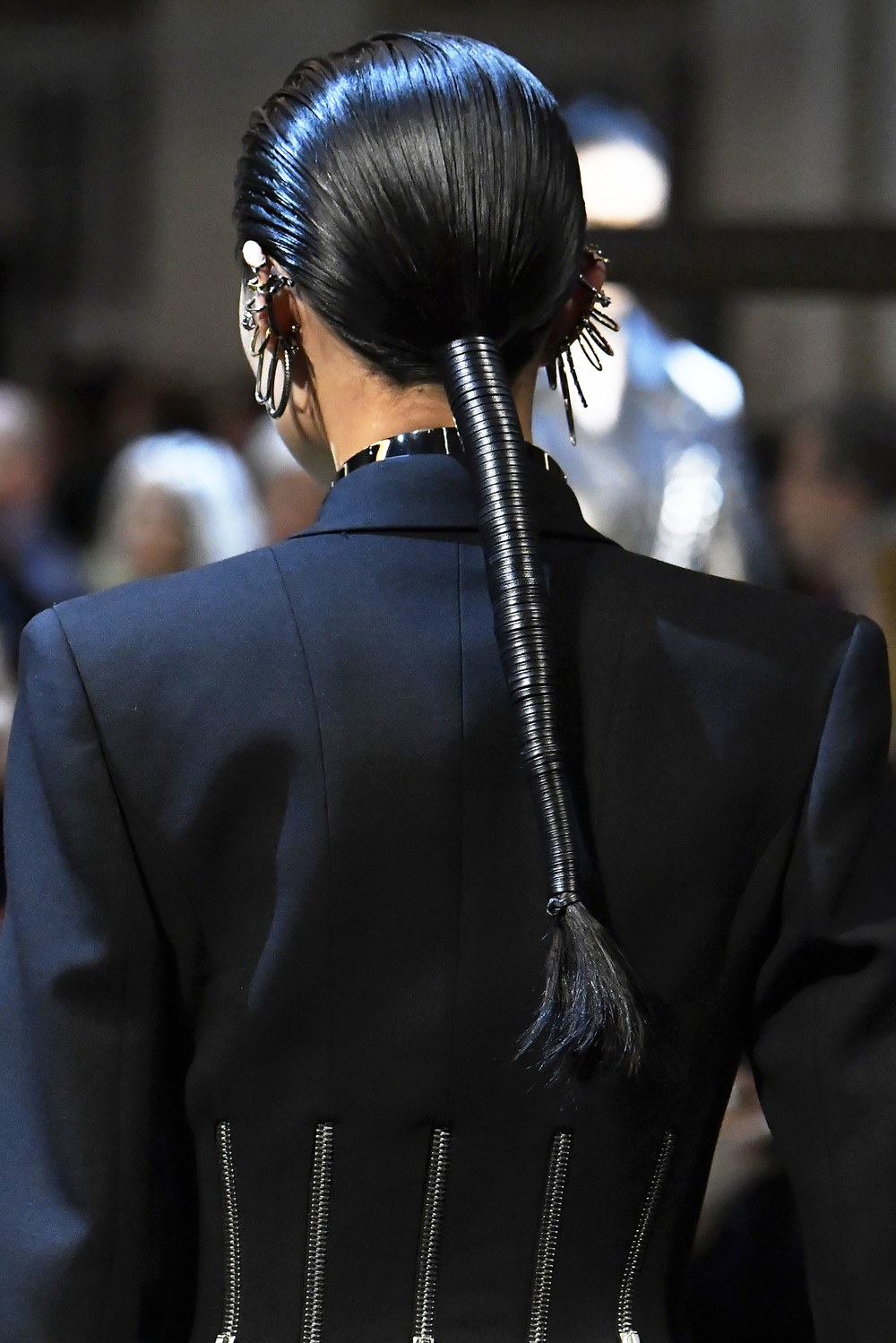 Tired of your typical ponytail? No big deal, Alexander McQueen gave us a fresh and new idea, wrap your hair in a very long hair tie! First, it will give you and edgy look. Second, it breaks your traditional styles. Third, it’s eccentric and fashionable and complementary to all outfits;