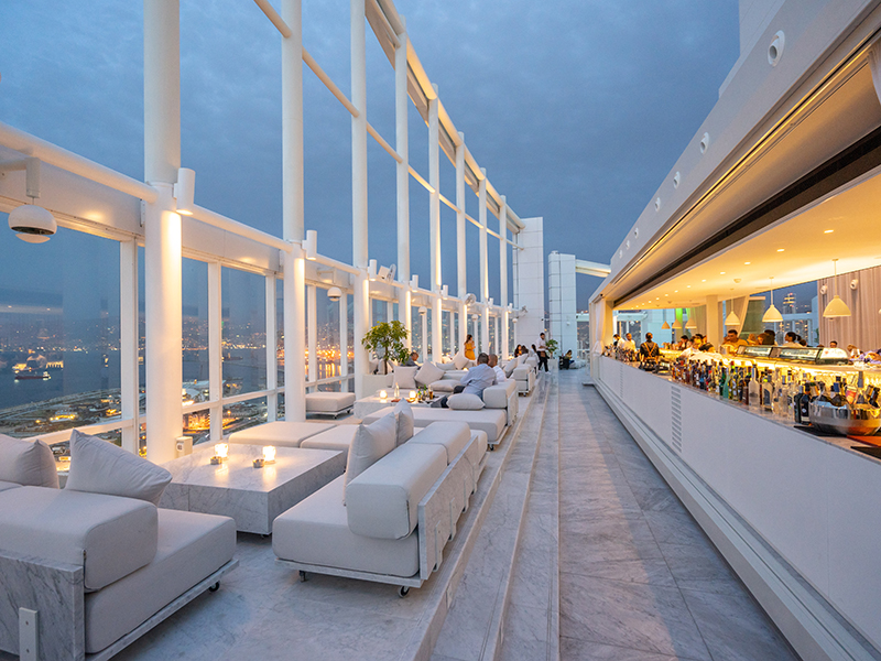 Stepping into - or as the design would have it, out to Level 26 is a breathtaking experience. Guests are welcomed by a lively atmosphere with an open space filled with white colored furniture, abundant white marble, a refreshed pool and an impressively long bar. The chic bar creates a social focal point for the bustling space and features stylish white accents with a white marble stone bar top. Guests can also take in the best views the city has to offer, stretching from the Mediterranean Sea to the Lebanese mountains, from Level 26’s outdoor patio, which is complete with both high tables and lush lounge seating.