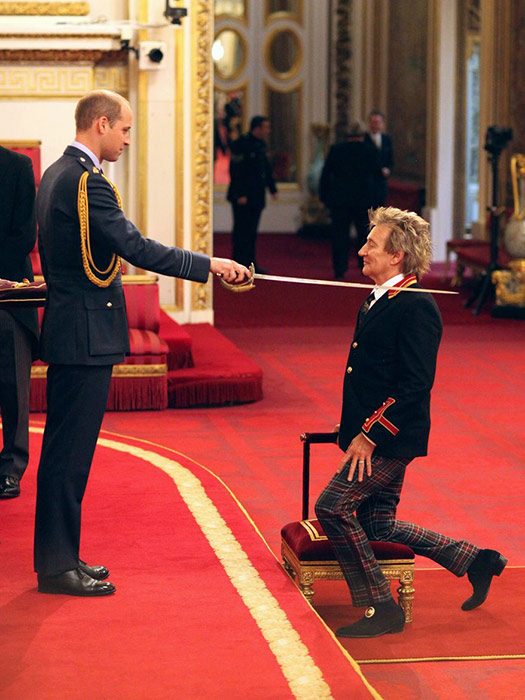 Sir Roderick David Stewart, aka Rod Stewart, was officially declared a knight by Prince William in the palace ceremony. It all took place in Buckingham Palace on Tuesday. The 71 year old singer-songwriter knelt before the prince as the sword touched his shoulders... And voilà, he was granted the honorary title of knighthood!