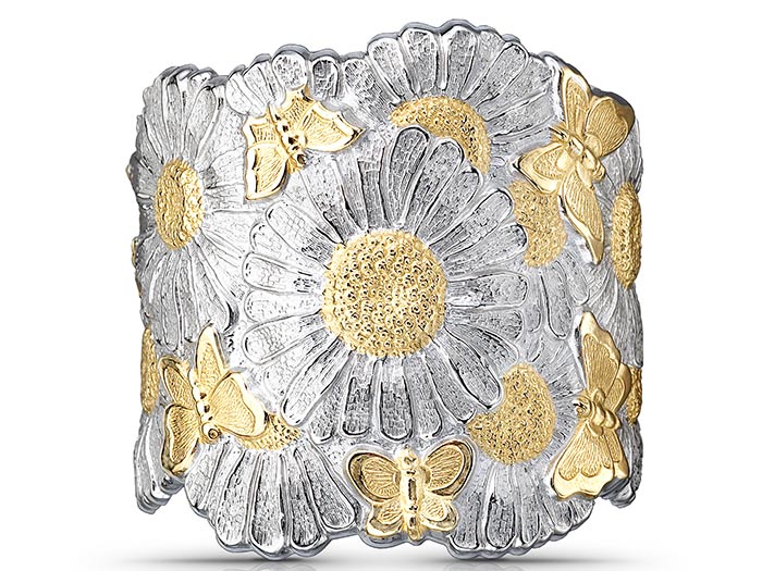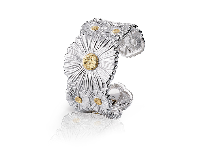 Silver takes the shape of a petal through a fine chiseling and the pistils are gilded, or even more outlined with the setting of brown diamonds. The silver jewels become the expression of the Buccellati goldsmith’s art and they interpret the younger and more cheerful taste, aspiring to objects of great style and design.