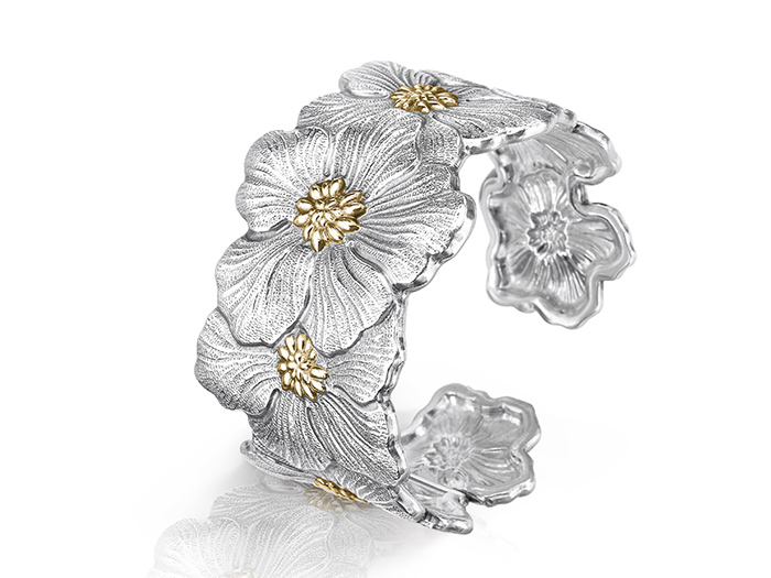 “Blossoms” is a collection of silver jewels inspired by flowers, with a fresh and captivating design fitting your everyday life and outfits. In some ways, “Blossoms” is a unique collection in its genre; it is the first silver jewelry line produced by Buccellati and at the same time it represents the creativity of the fourth generation of designers inside the Buccellati family.