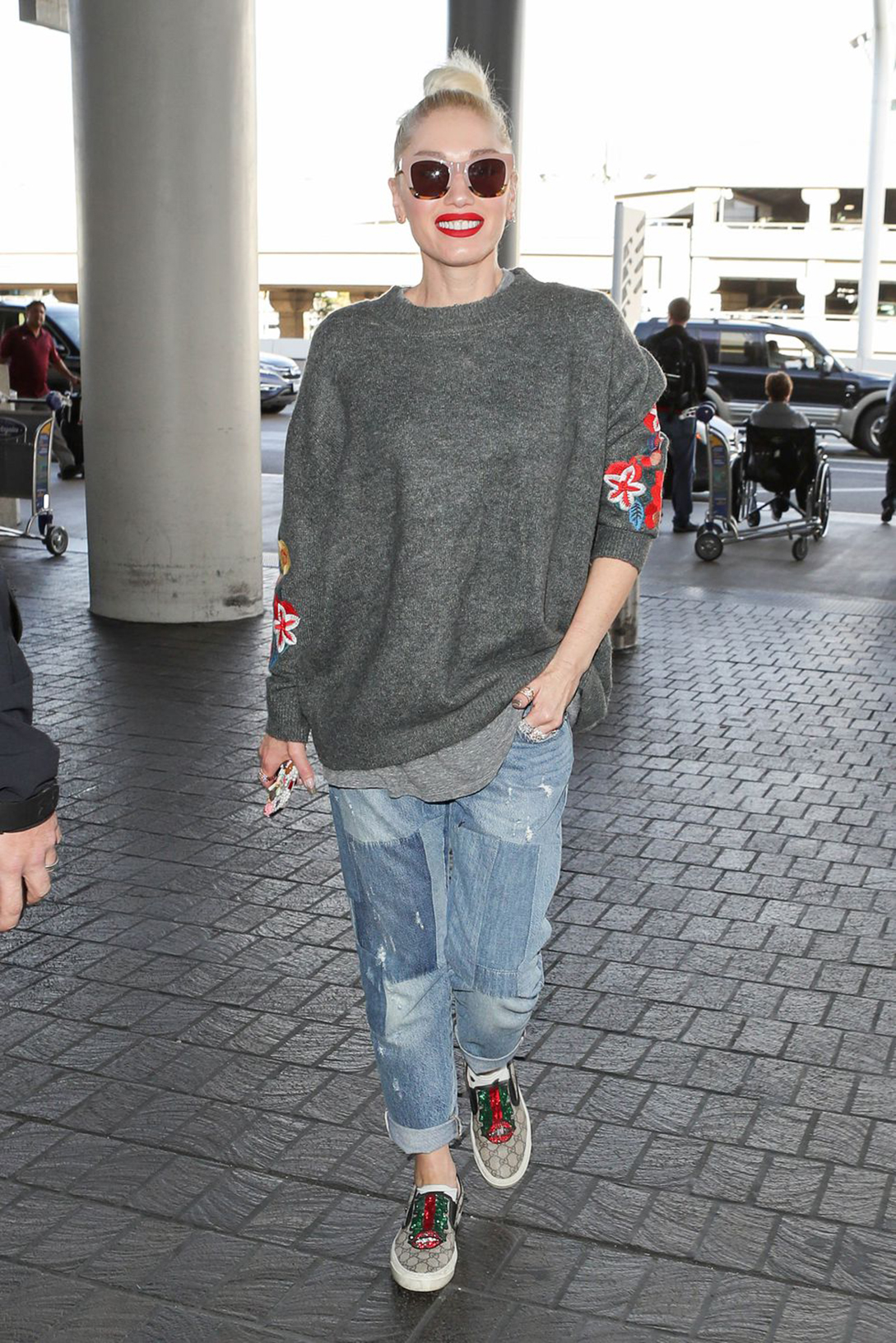Just by looking at Gwen Stefani’s picture we feel the comfy vibes. If your trip is long and a nice amount of workload is awaiting you, we suggest you take good rest on that plane with boyfriend jeans and loose knitted sweatshirt. If you want to go light on the footwear, we suggest you wear vans or non-lacy shoes. Don’t forget to smile while wearing your favorite shade of lipsticks (link to the lipsticks article).