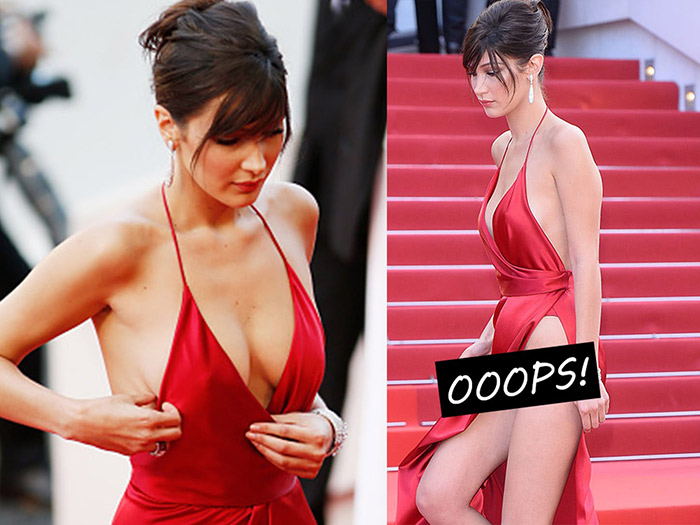 Bella Hadid picked the wrong day to skip putting on panties. While at the Cannes Festival, the model accidentally revealed her crotch! Her dress’s thigh-high slit was maybe a bit too high.