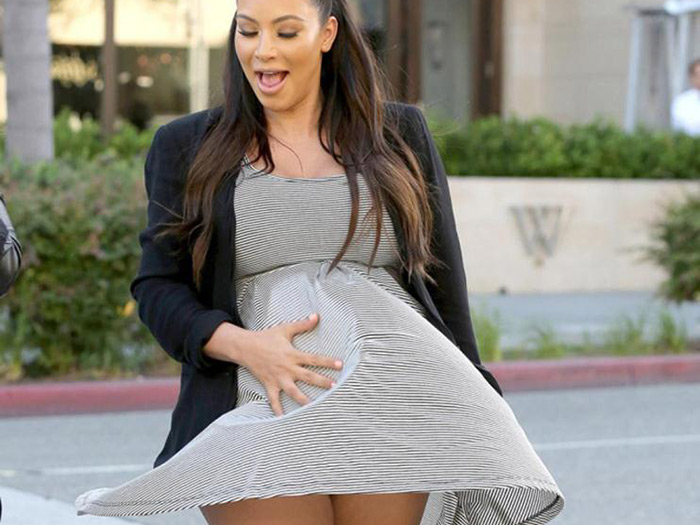 It seems that poor Kim Kardashian didn’t check the weather report that day in Beverly Hills. Her skirt had suddenly decided to blow up in the air while she was on a shopping spree. But considering she went for more “osé” looks on purpose, we don’t suppose this was much of an embarrassment for her.