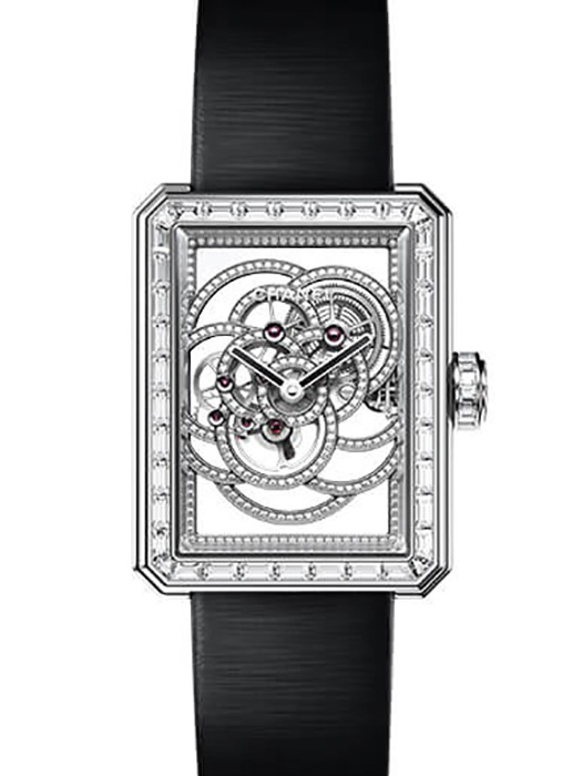 In 2017, CHANEL Horlogerie turns thirty. Only thirty, yet still that same desire to push further and reach higher. The House proudly introduces its second in-house caliber, reinterpreting the Première watch and elevating it to a new level of Fine Watchmaking. The new skeleton movement, in deepest black, is one of a kind. Representing the camellia, one of the iconic symbols of the House, this new timepiece is an expression of the liberty of the Studio of Creation. Only thirty, yet still that same desire and passion to create. At the end of 2017, CHANEL will launch a new aesthetic, a timepiece celebrating one of the most recognizable codes of the House, to be worn unexpectedly on the wrist.