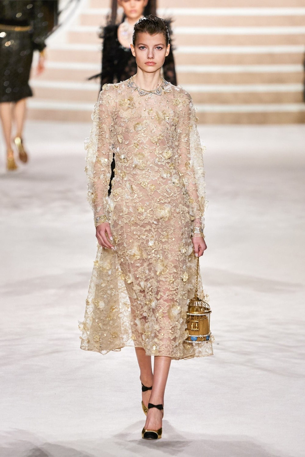 Chanel’s exceptional Métiers d’Art show is presented once a year and is a celebration of the skills and the know-how of the ateliers who work with Chanel. This year, Virginie Viard, the Artistic Director of CHANEL’s Fashion collections, chose to pay a tribute the Mademoiselle’s codes, from the bow, the chain, the wheat, the camellia, the two-tone to the double C, by naming the collection "31 Rue Cambon", after the address of Chanel's iconic Parisian store. Virginie Viard worked with filmmaker Sofia Coppola on the show set, and the opulent Grand Palais in Paris was transformed into rooms reminiscing Coco Chanel’s personal apartment. Models including Kaia Gerber and Gigi Hadid walked the runway, wearing stunning pieces. Out favorites? The birdcage-shaped bag, the jeweled belt is worn as a belly chain, the white skirt with a graphic Chanel logo pattern dotted with camellias, and the tiny black quilted handbag.