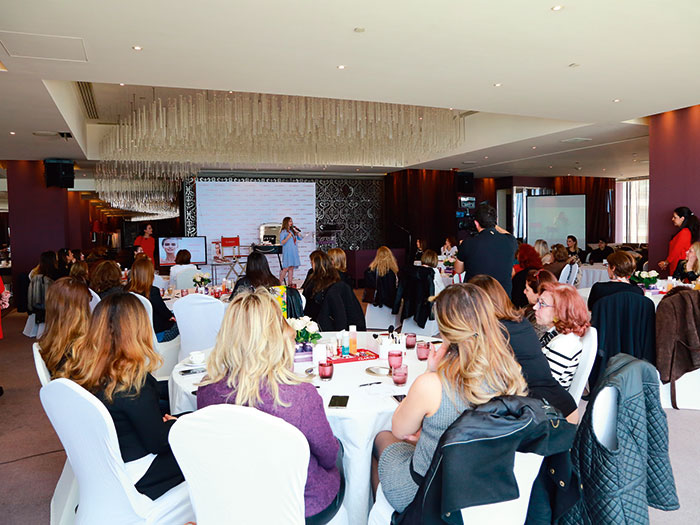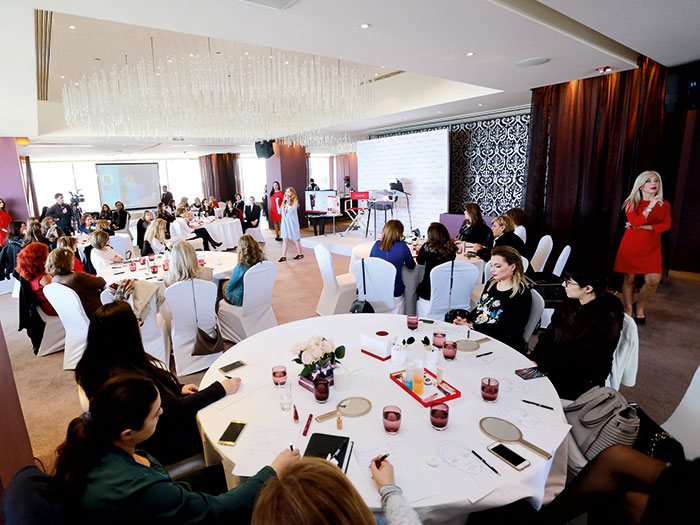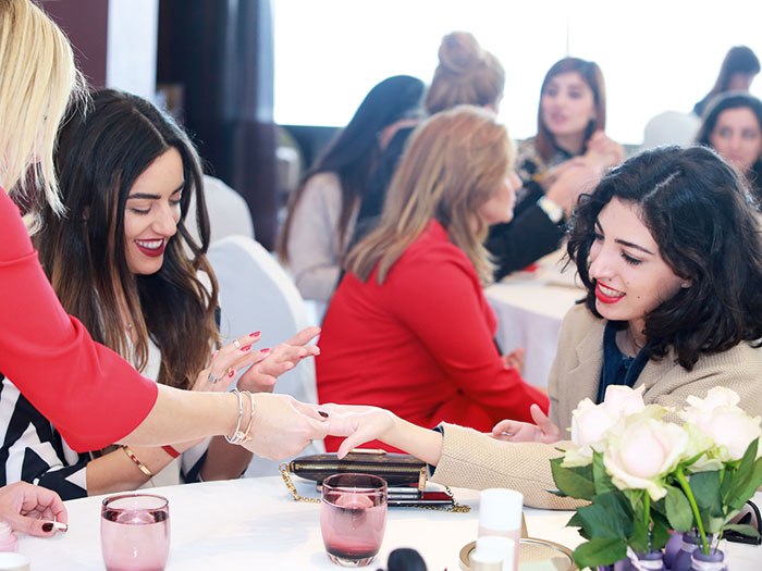 Clarins Group Lebanon and Regional Makeup Trainer Sonia Merlo Trainer, CLARINS Group (Middle East) Ltd. invited their faithful customers from different regions of Lebanon, as well as the press and the bloggers, in the Eau de Vie lounge in the Intercontinental Hotel of Phoenicia, to assist to a makeup demonstration and workshop under the theme: A flawless complexion , doe eyes and lipstick.