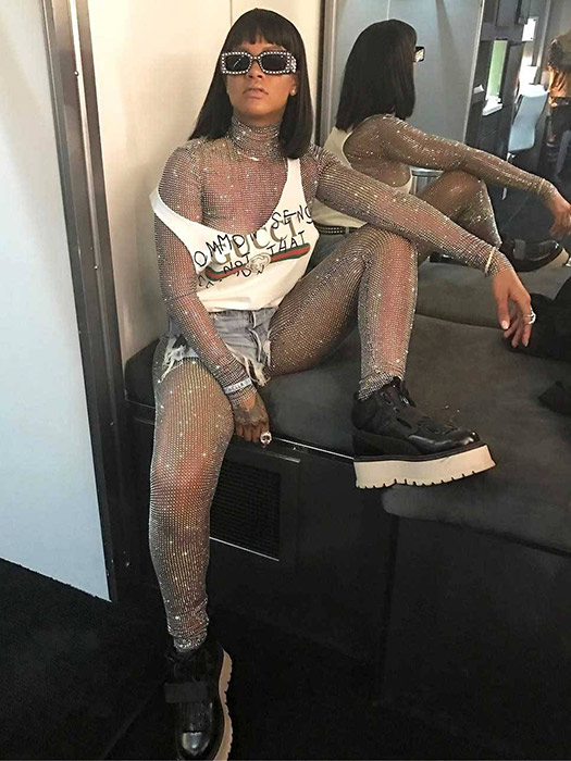 Rihanna knows how to dress. This weekend, the Work singer wore the most fashionable – and expensive – outfit of all. She was in a sparkly Gucci bodysuit with a matching face cover, ripped denim shorts and a tank top. And it cost $8,480!
