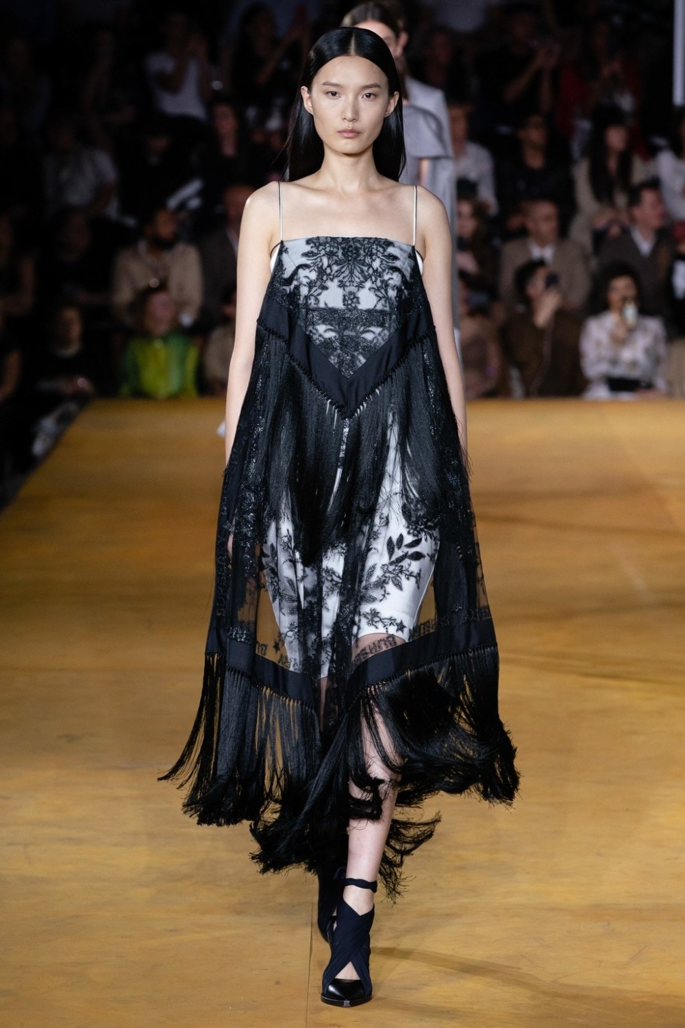 Riccardo Tisci’s new collection for Burberry is Evolution, "inspired by our past and dedicated to our future, an evolution of the Burberry kingdom." he explained after the show. The designer wanted to pay tribute to founder Thomas Burberry, both an innovator and a romantic. Therefore, we saw lace, ruffled Victorian dresses, beige three-piece suits, very bourgeois tailors, printed scarves and trench coats, of course. To better anchor them in the future, Riccardo Tisci has adorned the costumes of fine sequined stripes, the dresses of a label "I am a unicorn" . This show was also the Burberry’s first ever carbon neutral show, and the brand shared on Instagram: "we have offset our impacts, such as the flights of guests traveling to London specifically for the show and the build and production of the event, through VSC-certified REDD+ projects which prevent deforestation and conserve tropical rainforest in the Brazilian Amazon."