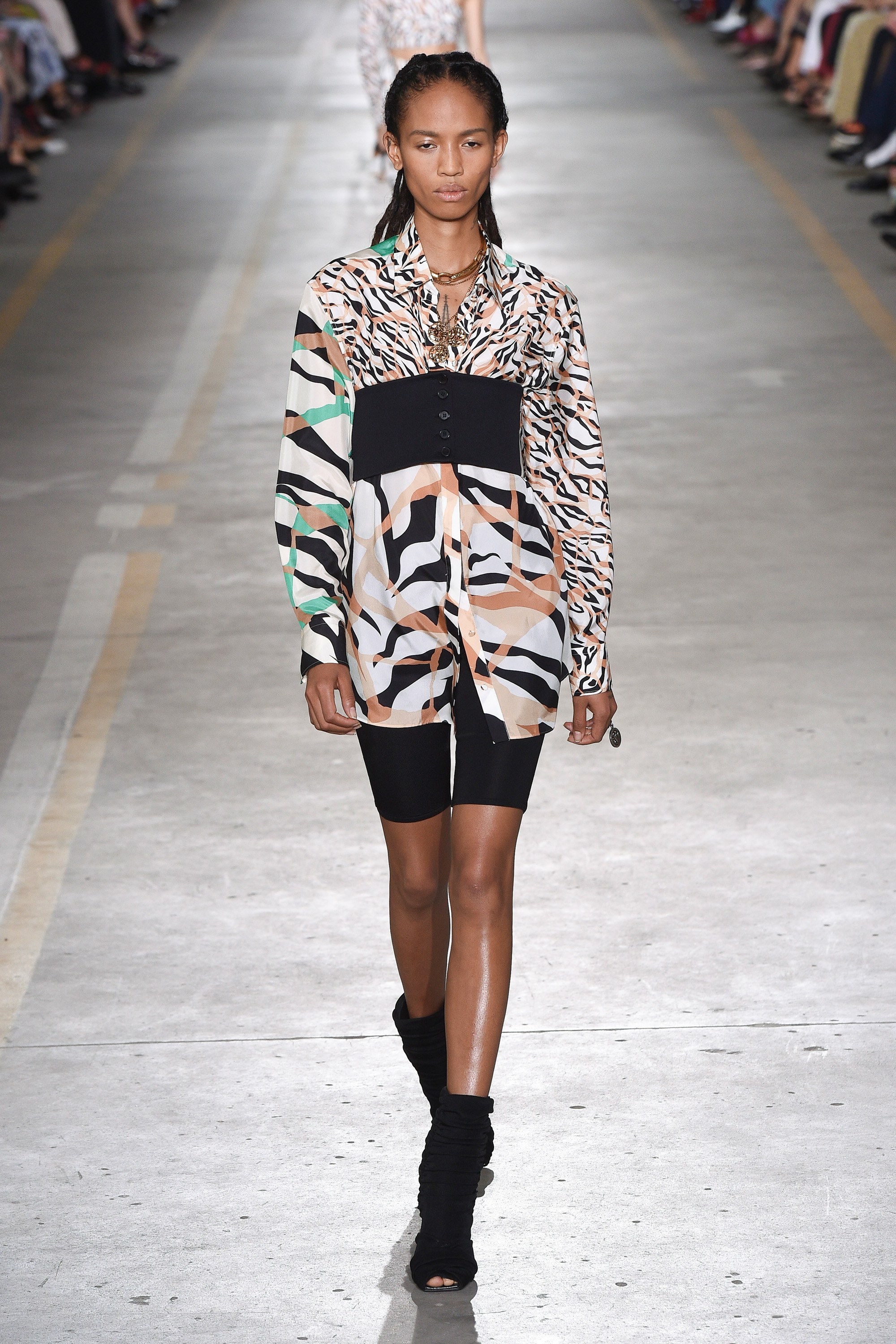 For a more shabby-chic look, opt for the Roberto Cavalli look. Biker shorts are coming back and hitting the runway hard. The shoes are to die for and they add a more formal look to the whole outfit. The black waist vest shapes your body in a fabulous way and the necklaces seal the deal for a unique look.