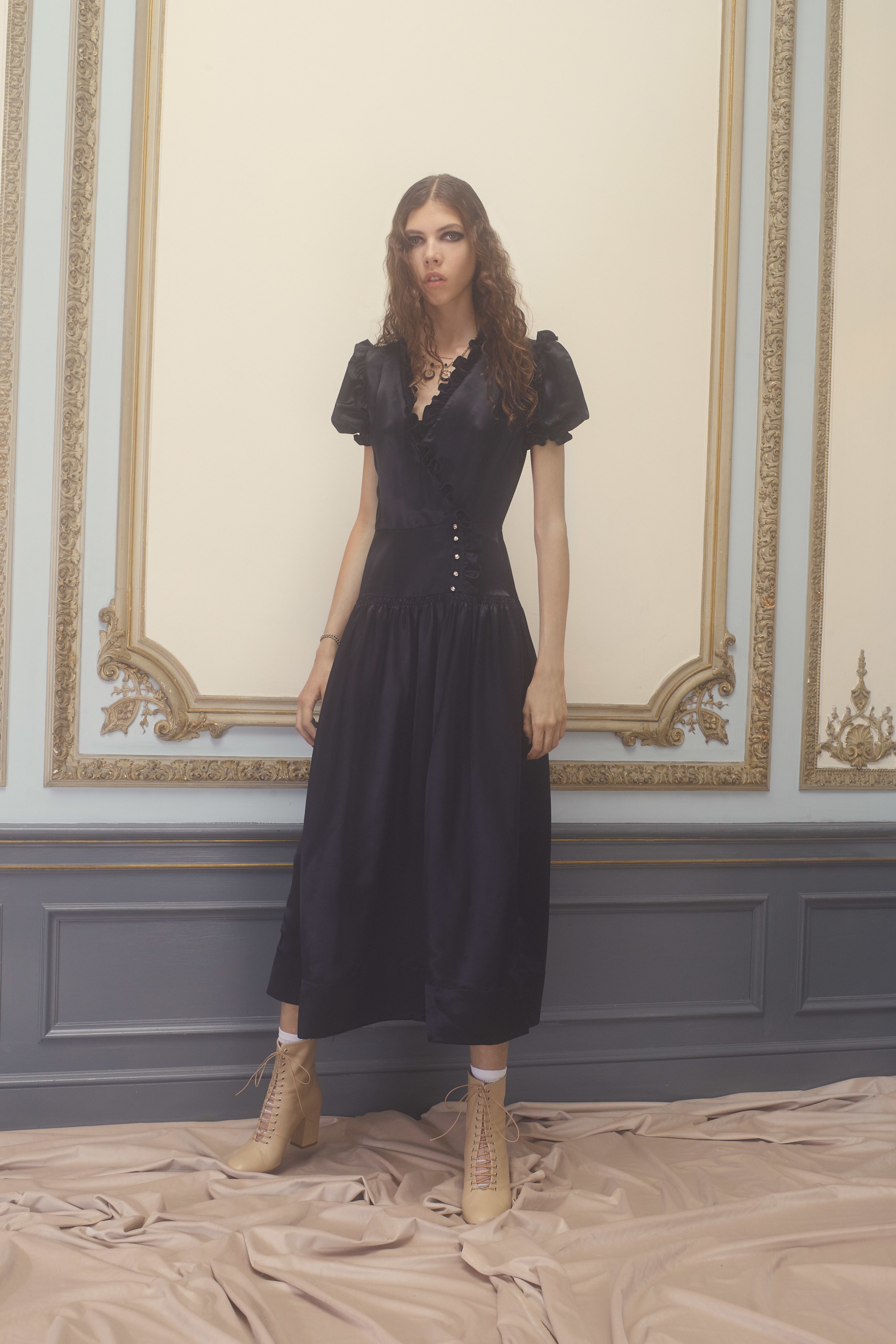 Try the retro vintage style with soft fabric, buttons on the side, and Victorian sleeves. Smokey eyes and natural hair will update this look and give it a more stylish look. Break the monochrome trend with beige ankle boots, beneath them white socks.