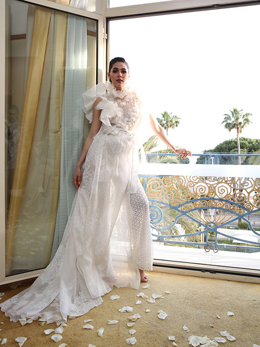 Araya Hargate looked fierce in a Georges Chakra Couture Summer 2017 ensemble for the L’Oréal photoshoot conference in Cannes.