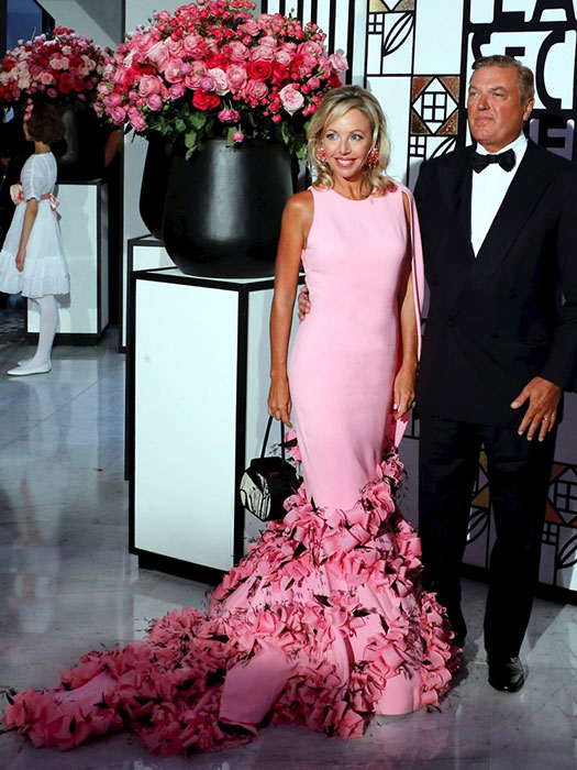 Her Royal Highness Princess Camilla of Bourbon Two Sicilies looked radiant in an ultra-modern pink gown with ribbon and feather detail from the Georges Chakra Fall 2016-2017 Couture collection, at the 63rd Annual Rose Ball. This year’s event was designed by Karl Lagerfeld and themed around the Viennese Secession, in aid of the Princess Grace Foundation at Sporting Monte-Carlo, Monaco.