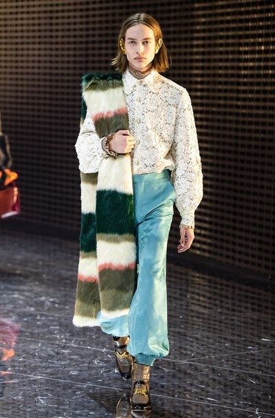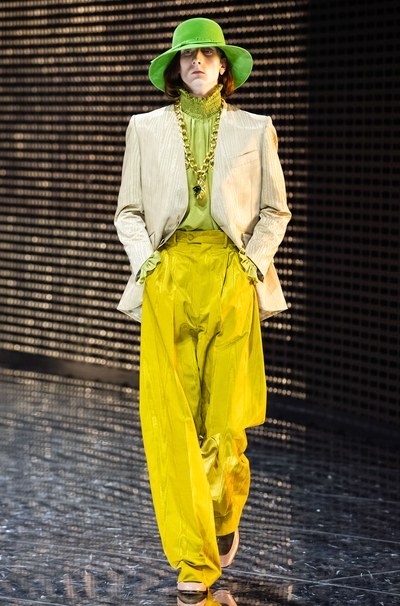 A dash of the hippy era, dark colors are no longer limiting trousers and shirts, Gucci offered a new understanding to the term loose outfits and comfy chic. Big necklaces also are a must and give you a powerful appeal.