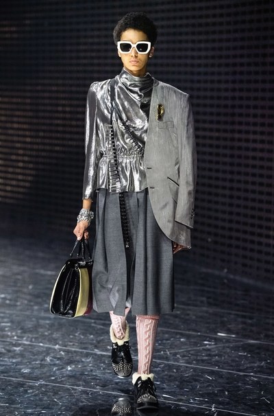 Because patterns are also important, Gucci brought a very medial look and made it so modest. The stockings and the dresses are coordinated in a way that combines the old elegance with the new stylish.