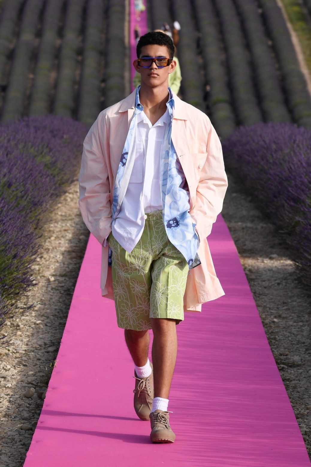 Simon Porte Jacquemus celebrated the 10 years of his brand in his native Provence, with an unforgettable fashion show, and a 500-metre bright pink catwalk in a lavender field. Called "Coup de Soleil", this show brought together, for the first time, creations dedicated to men's and women's locker rooms. On this occasion, the designer has signed a collaboration with Swarovski, unveiling his creations in a new light. "Swarovski is for me an incredible historical brand that has worked with many great creators, such as Dior and Alexander McQueen.This is the first time we use crystals and they allow us to explore a new form of craftsmanship that I am delighted to present in Provence," reports Simon Porte Jacquemus, as this collaboration is part of the Swarovski Collective, a support program created following the first collaboration of the Austrian company with Alexander McQueen in 1999. From Emily Ratajkowski to Pernille Teisbaek and Camille Charrière, the coolest influencers turned up to support the designer, and they were all wearing his creations. We are obsessed!