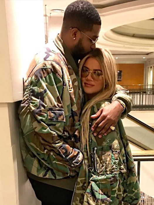 Khloe Kardashian shared rare PDA in a picture of her and her handsome boyfriend Tristan Thompson. The two are seen cuddling up wearing matching camo outfits. How cute!