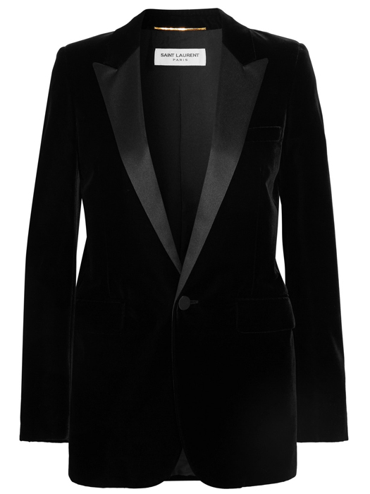 Velvet tuxedo jacket with satin finish, Saint Laurent.