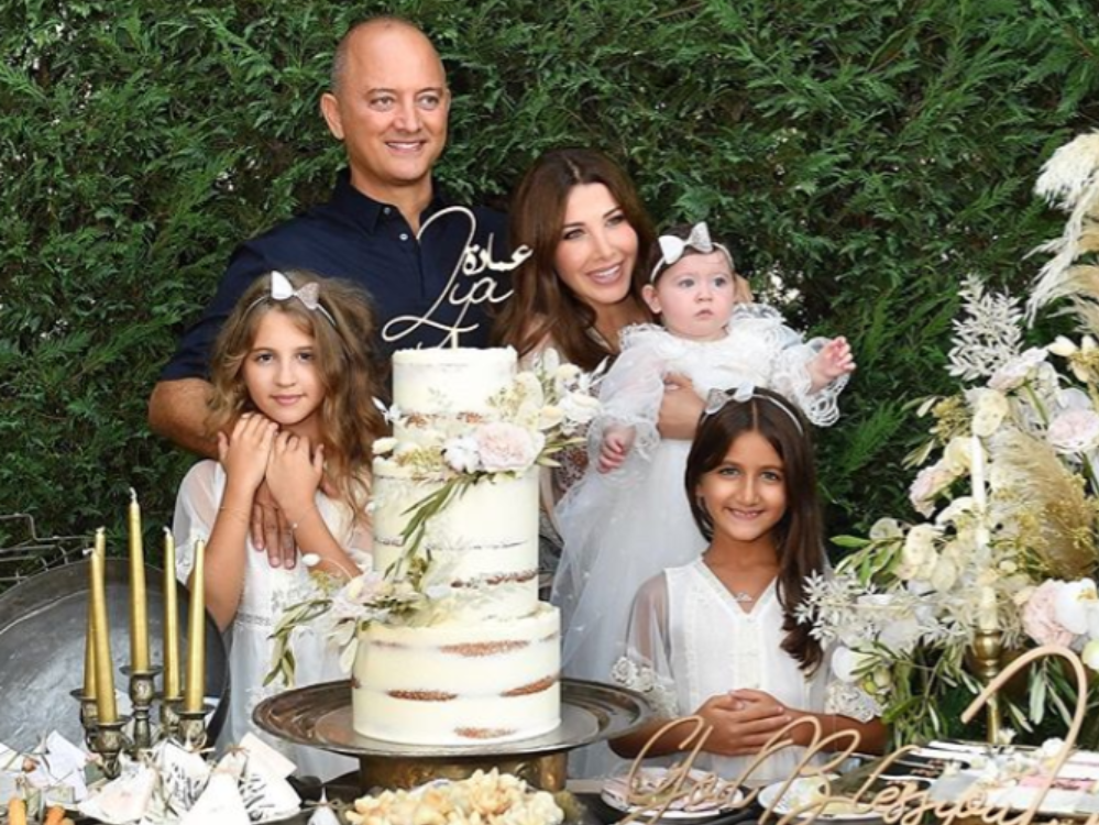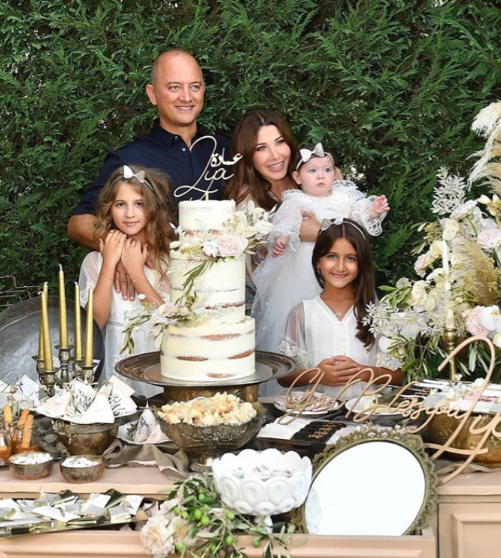 Nancy Ajram, mother-of-three, shared a family photo of her youngest Lya’s baptism, captioned with “God bless our angel LYA.” Even though the singer has shared a photo of Lya previously, this is the first time we could see her face.