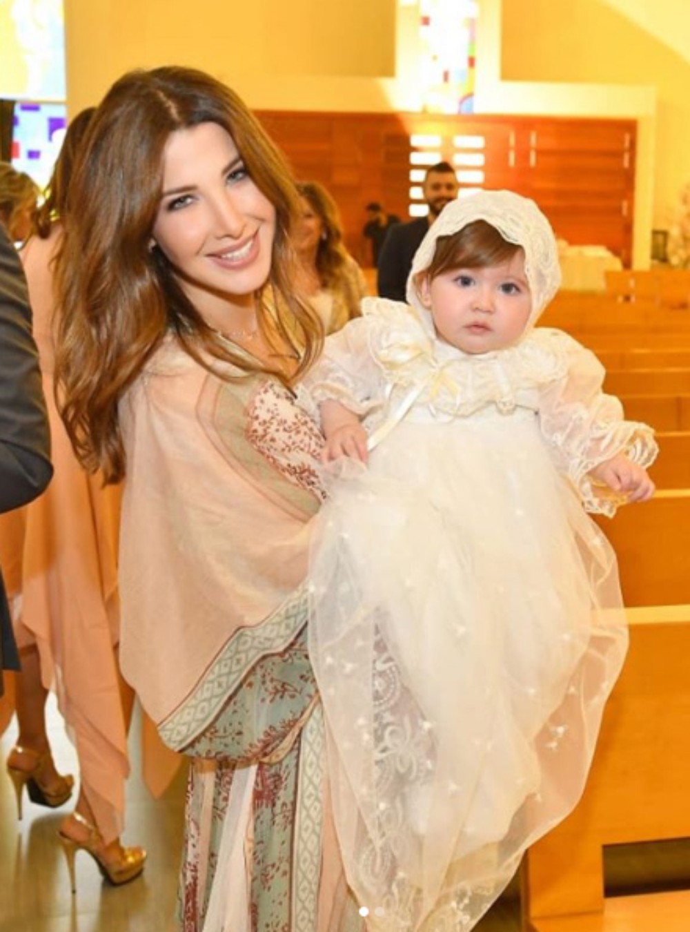 Nancy Ajram looked dazzling during her daughter’s baptism