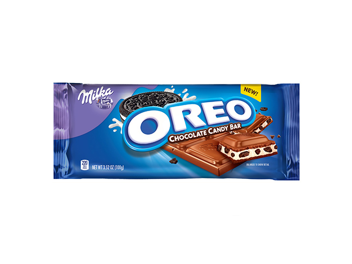 The cookie-candy bar concept isn’t new, but this is the first time Oreo fans will find Oreo cookies inside of a candy bar. The new product is in partnership with Milka, originally a Swiss chocolate company that is now owned by Oreo’s parent company, Mondalez. Oreo’s new Chocolate Candy Bar is a layer of Oreo creme mixed with chocolate wafer bits and then enrobed in milk chocolate.