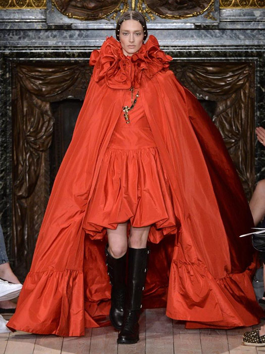 This year, Valentino added dramatic ruff collars and cool buckle-up riding boots to their collection. The brand’s show was inspired by William Shakespeare: Criss-cross sleeves and gathered silken skirts were on the menu.
