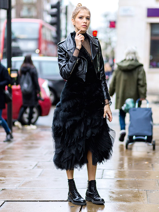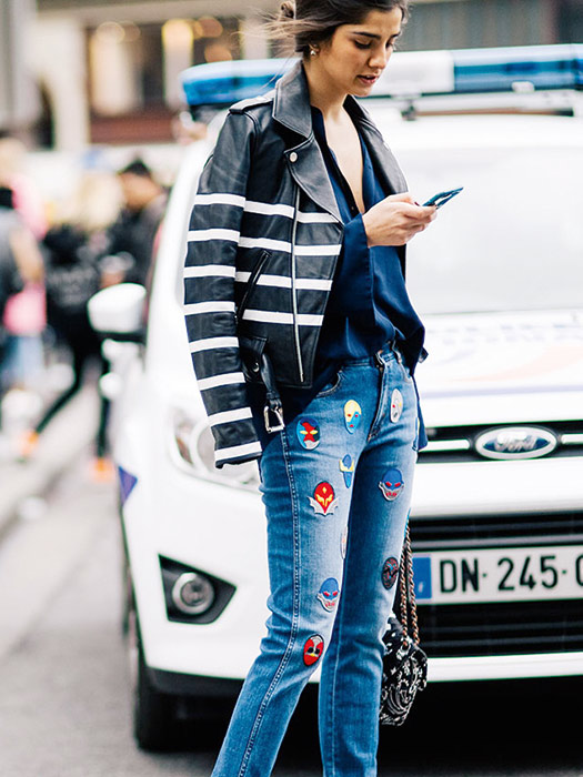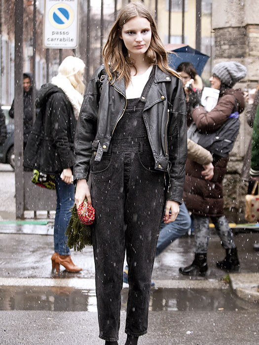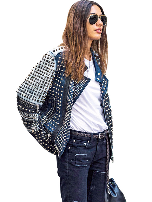 This season, the perfecto is best worn black but also colorful, cropped but also oversized, sober but also studded or printed, and can go with all our outfits: it gives a touch of rock to a delicate tutu or a boho dress, a sexy touch to a prudent and chic outfit, it's the best friend of skinny and straight-cut jeans, and it teams up with the overall for a boyish look.