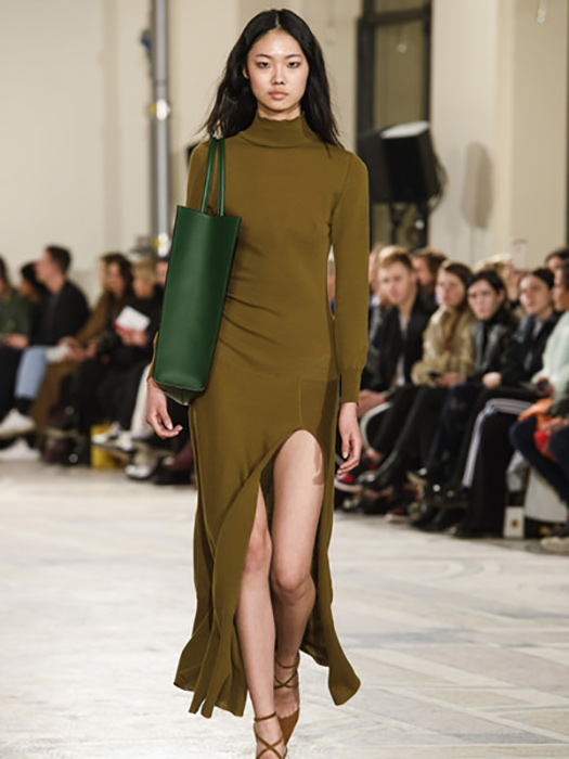 Oversized was the theme of Victoria & Tomas’s Fall 2018 collection. The brand created oversized manteaux, blazers, trousers and tops, therefore giving the looks an androgynous touch. The below-the-knee dresses and skirts gave the mannequins a sexy nonchalant attire.