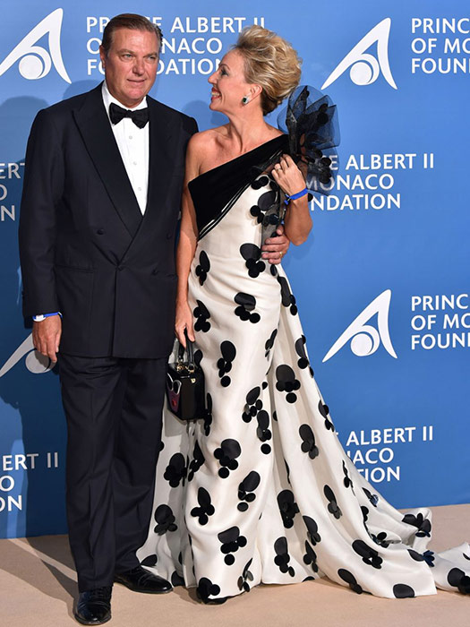 Her Royal Highness Princess Camilla of Bourbon‚ looked flawless at the Inaugural Monte-Carlo Gala for Global Ocean honoring Leonardo DiCaprio in a black and white one-shoulder dotted silk gazar gown from the latest Georges Chakra Couture Fall-Winter 2017 Collection.