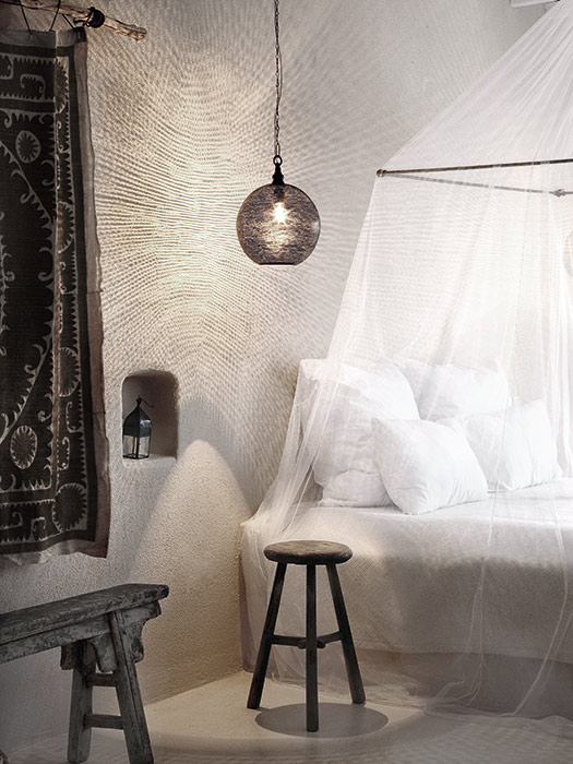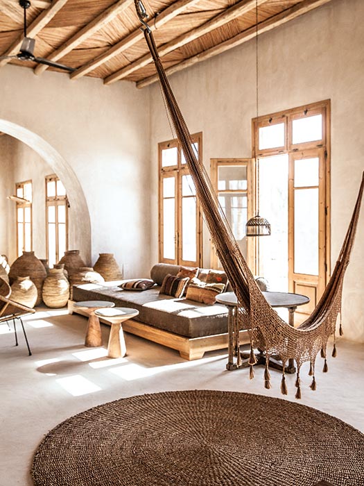 Crumpled linen house laundry, thick quilted cotton bedspreads, ceramics, Berber carpets and elegant tiles helped creating an authentic impression. Overlooking the sea and gardens, the views are stunning. You can even relax in a macrame hammock on the terrace which calls for contemplation and plenitude.
