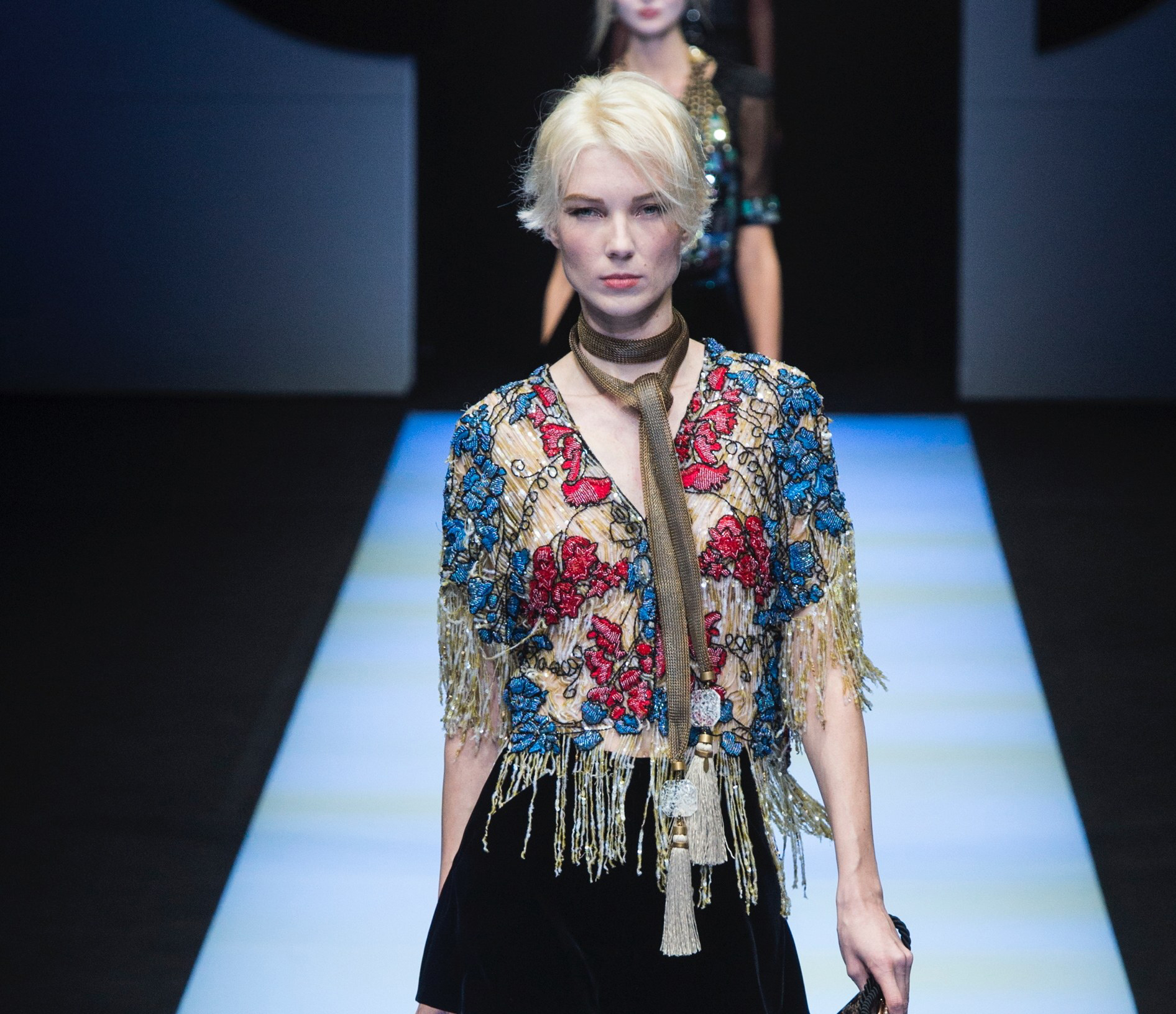You’re unsure if you should wear a necklace or a scarf? Combine both with Giorgio Armani and slay that gathering with your unpreceded entrance. Wrap it around your neck and give it a spotlight by tying both extremities just below your neck. It’s always a good idea to keep one side higher than the other.
