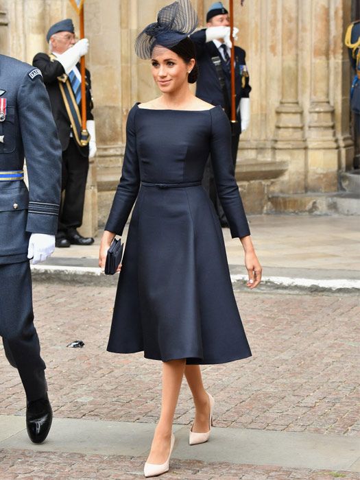 Yesterday, the Duchess was spotted during her tour of Ireland with her husband in an olive bateau-neck dress by Roland Mouret. For the RAF100 event, she wore a little boatneck neckline black dress by Dior and for the christening of her newest nephew Prince Louis, Markle chose guess what, a bateau neckline gown by Ralph Lauren.