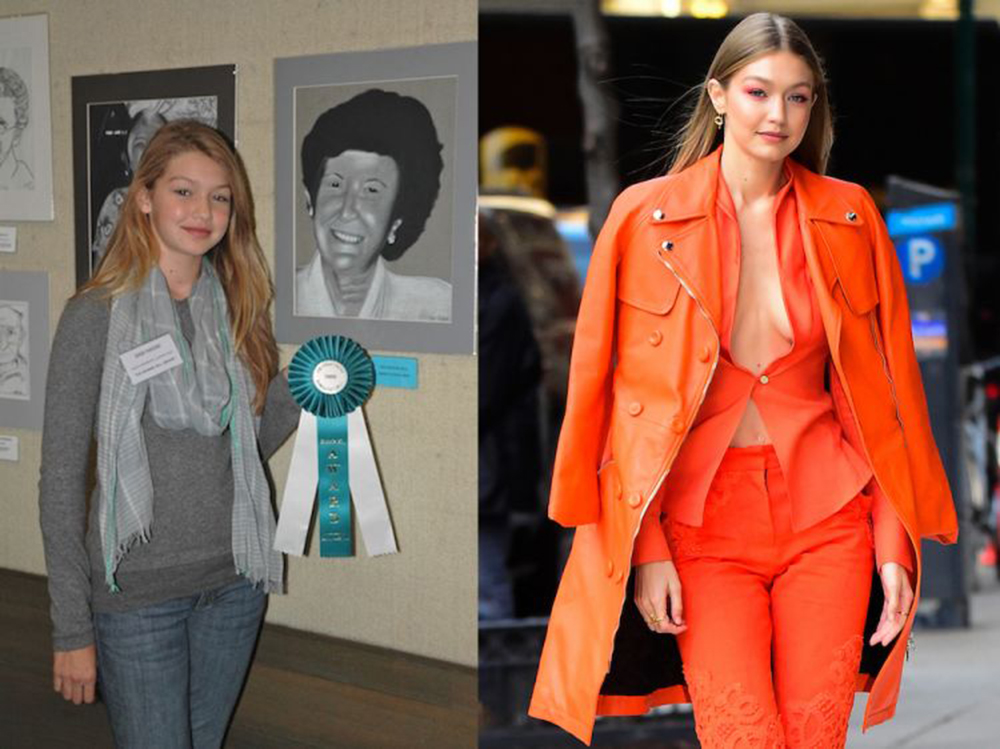 Same cheekbones and silky hair, Gigi Hadid always had that glowy skin and gorgeous shy look.