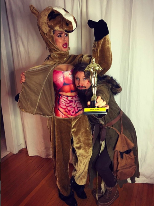 The Vampire Diaries star went for a hilarious getup; she went as the horse from The Revenant, and her friend wore a Leonardo DiCaprio costume with the Oscar in her hand.