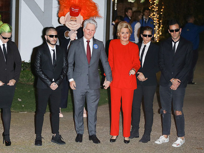 This is by far the best disguise of the weekend. Katy went as Hillary Clinton and Orlando as Donald Trump.