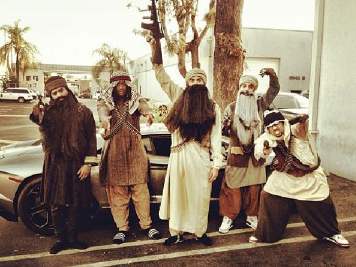 Chris Brown made an intriguing appearance with his friends; they were dressed as terrorists!