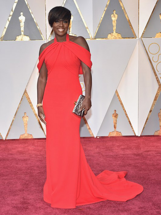 Viola Davis sure does look good in red. She wore a breathtaking off-the-shoulders Armani Privé gown.
