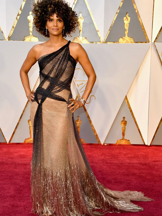 Halle Berry looked classy – and a bit wild – yesterday night. She chose an afro hairstyle with her Atelier Versace gown.