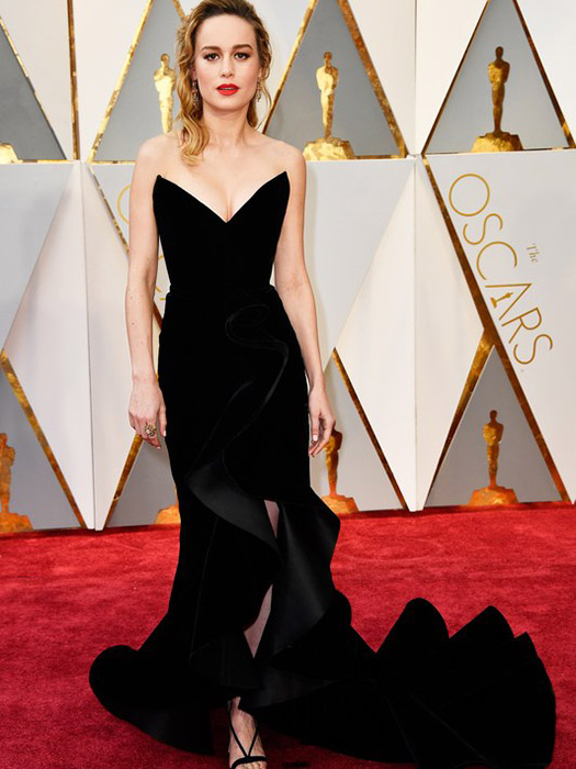 Brie Larson’s strapless black velvet Oscar de la Renta gown screamed classy. Her red lipstick is a glamorous touch!