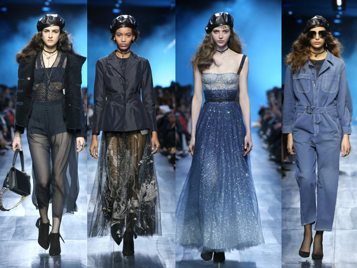 Maria Grazia Chiuri's second women’s collection for Dior offered a blue themed collection. The show notes explained that it was one of Christian Dior’s favorite hues “Among all the colors, navy blue is the only one which can ever compete with black; it has all the same qualities.”, says the show note that included this line from his 1954 book “The Little Dictionary of Fashion”.