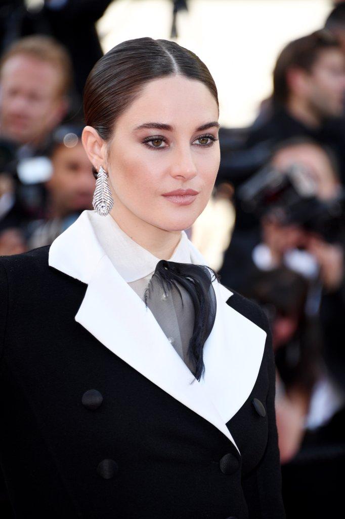 SHAILENE WOODLEY wore Plume de Paon pendant earrings set with rose-cut diamonds and diamond-paved.