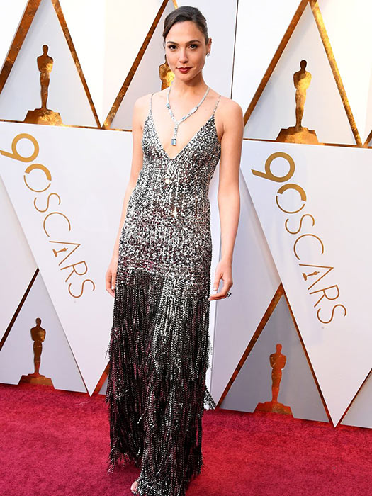 The star of Wonder Woman made her appearance wearing a sparkling silver maxi dress by Givenchy.