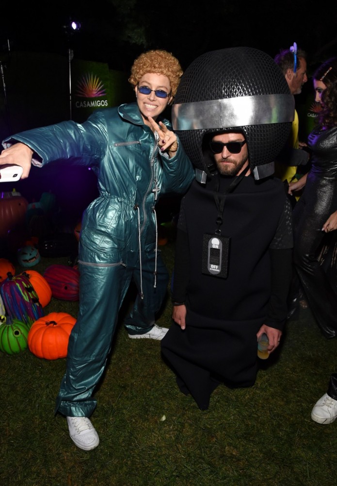 - Jessica Biel dressed as husband Justin Timberlake from his NSync days, while Justin is dressed as a microphone.