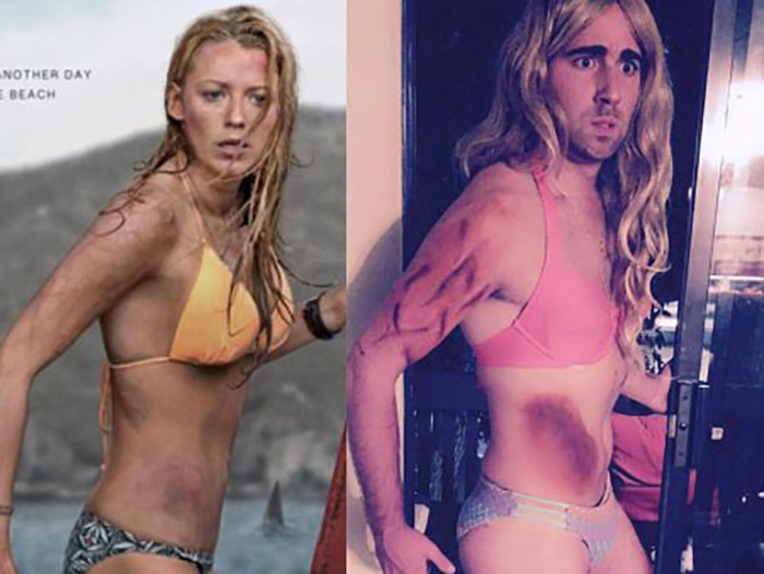 Corey Robinson, a Blake Lively fan, took this whole fandom a bit too seriously; he copied the appearance of the star in the movie ‘The Shallows’, a thriller where her character gets bitten by an actual shark. And yes, he even drew the shark bites on his arm and leg. Even Lively herself couldn’t help but notice!