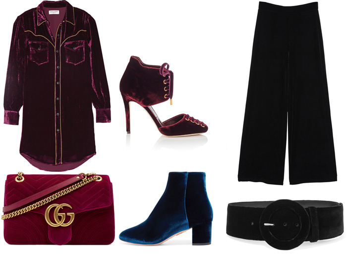 It is definitely THE season for velvet! Soft and sensual, velvet is a must. You can have it on dresses, skirts, bags, shoes, jackets, pants... and it can be worn as a total look without hesitation.